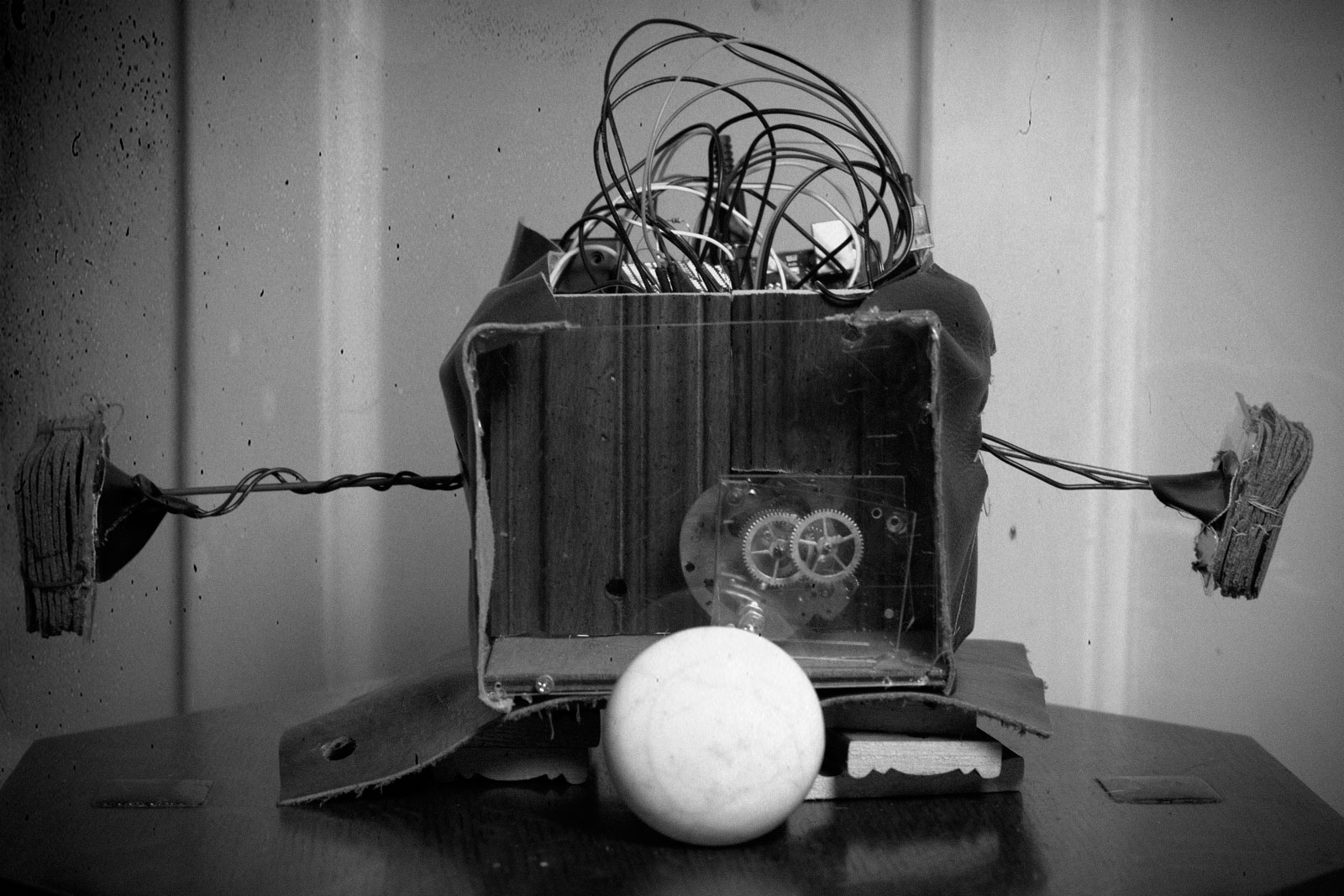 There are two containers. Container 1, the ‘Source’ has a pulsating LED. Container 2, or the ‘Self’ has no light and needs to be filled by pouring Container 1 into Container 2. The top-down projection is now the users canvas with to spread his/her ‘light’ by pouring Container 2. The Arduino board and code recognizes these actions via tilt switches in both containers and sends the appropriate signals to both the container LED’s, increasing and decreasing of LED brightness to mimic pouring, and to the Processing code. At the same time the infrared camera reads the position using brightness tracking of the infrared LED inside Container 2. Processing then outputs the appropriate visuals in the appropriate location through the projector. There are variables according the amount of ‘light’ that Container 2 received from Container 1 that change the visual output.